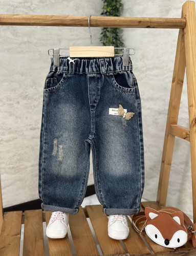 شلوار جین بچه گانه رنگ آبی کثیف طرح پروانه
