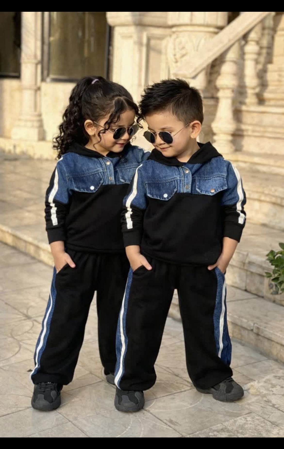 ناموجودست هودی و شلوار بچه گانه ترکیب پارچه دورس دو نخ پنبه و جین