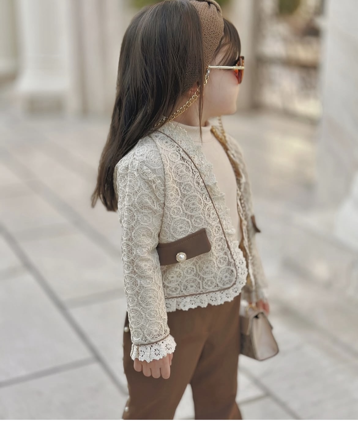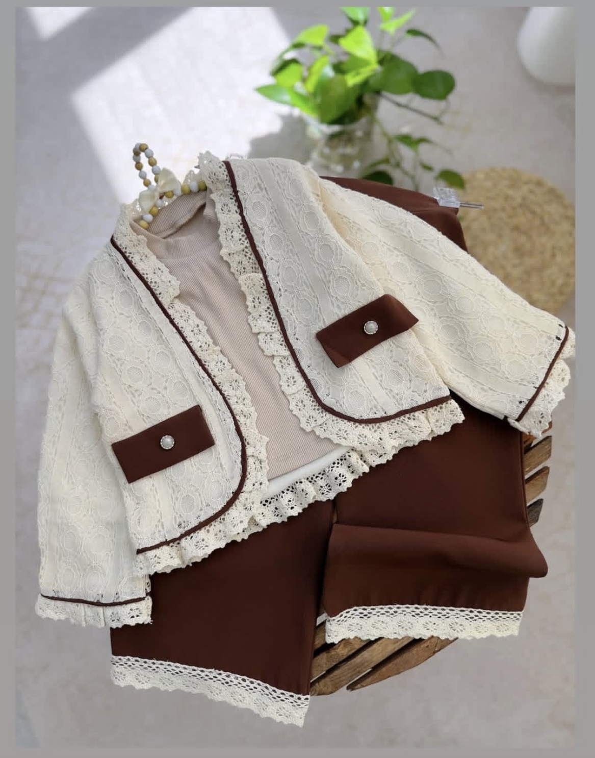 ست ۳ تیکه کت گیپور و کراپ و شلوار