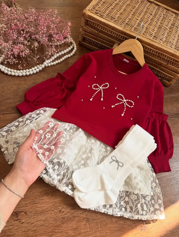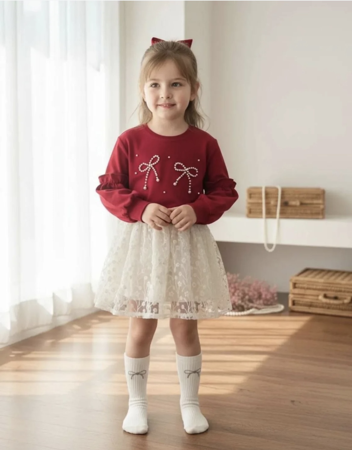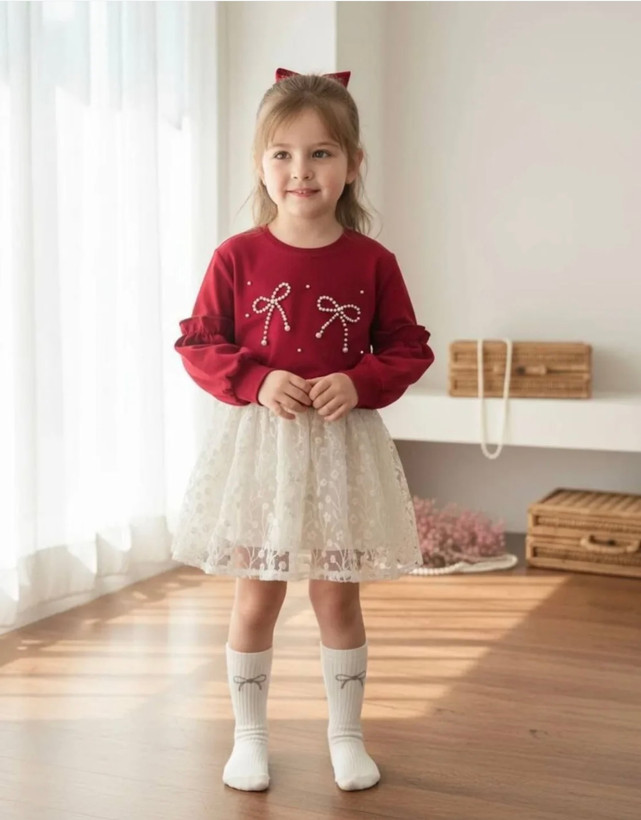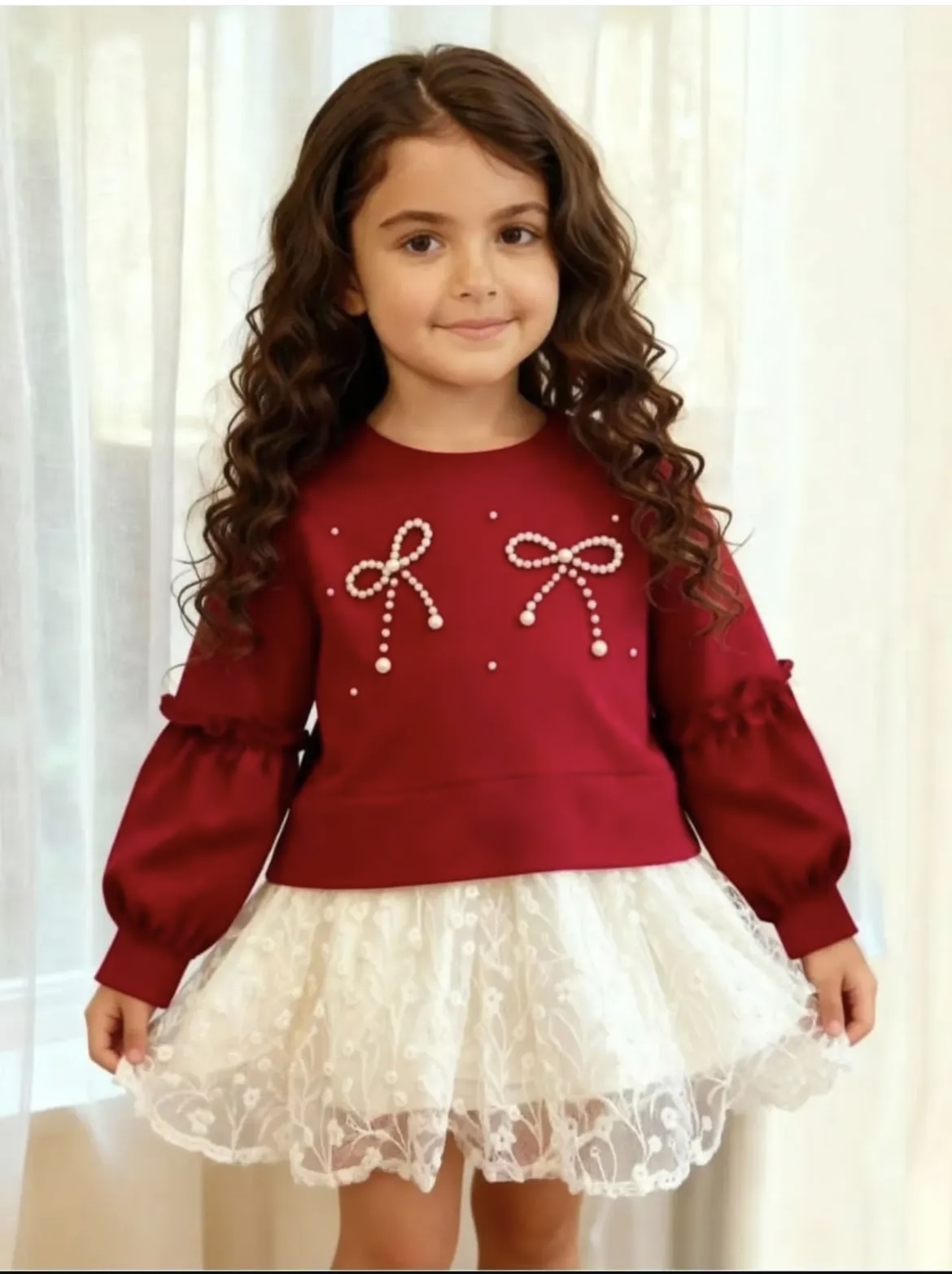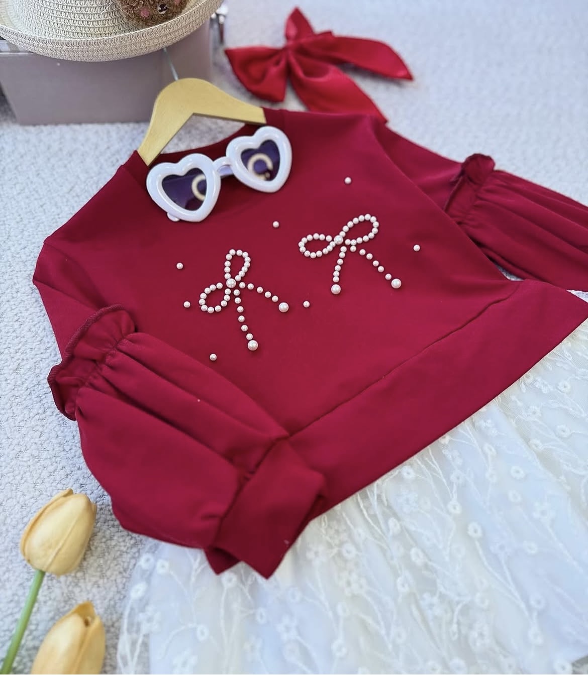 پیراهن مدل یلدایی دخترانه با دامن تور