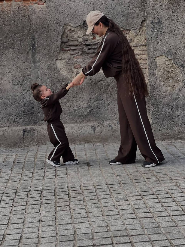 ست مادر دختری ترند سوییشرت شلوار قهوه ای روشن