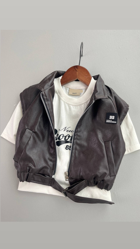 ست وست چرم و تیشرت نخ پنبه