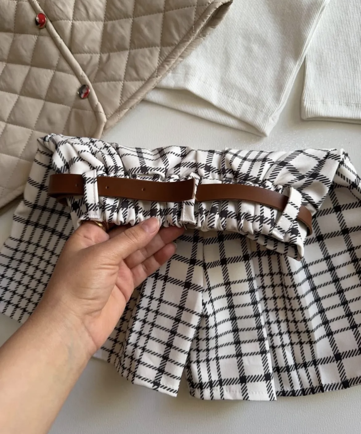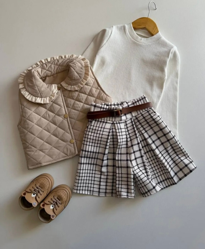 ست ۴ تیکه لیانا شامل :بلوز و پافر و کمربند و شلوارک