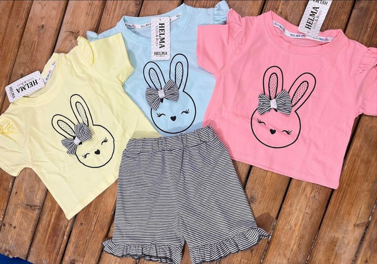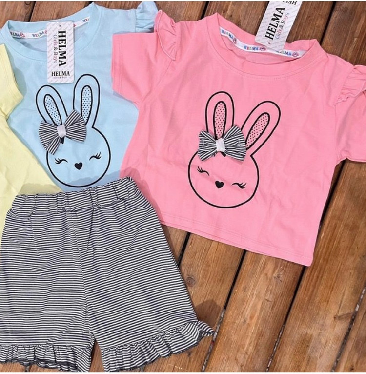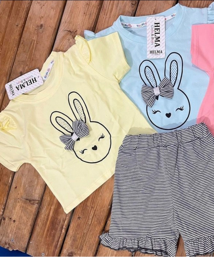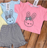 ست تیشرت طرح خرگوش نخ پنبه با شلوارک نخ پنبه طرح راه راه