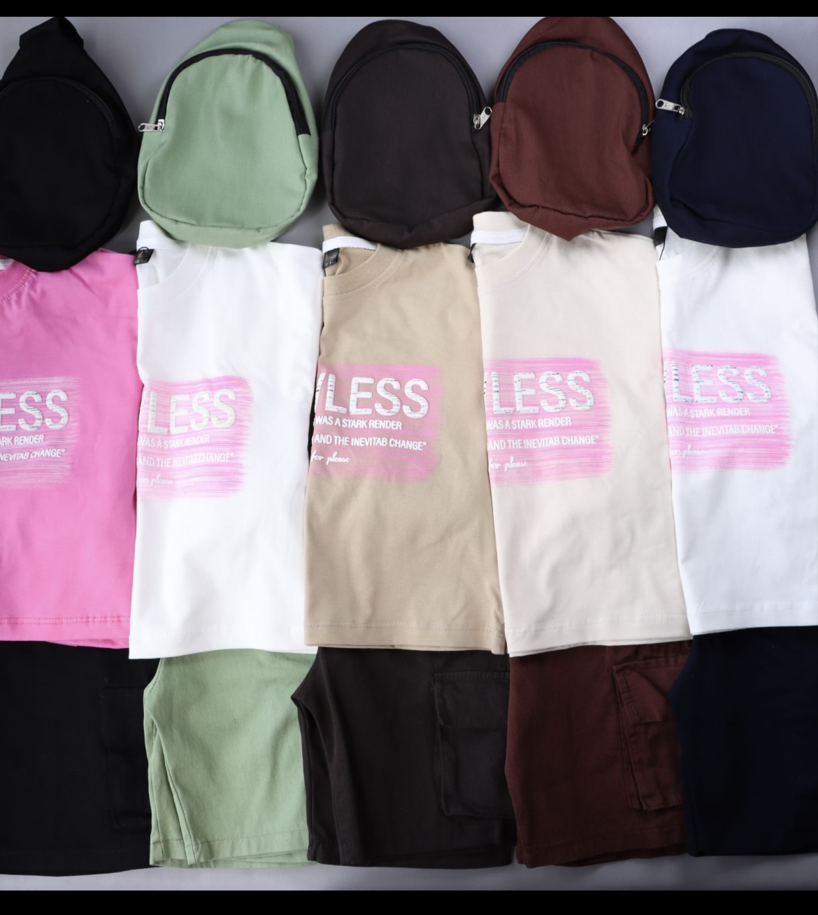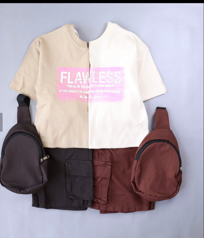 ست تیشرت و شلوارک به همراه کیف