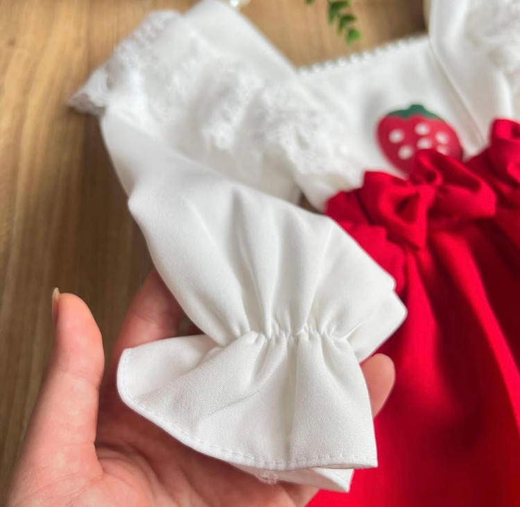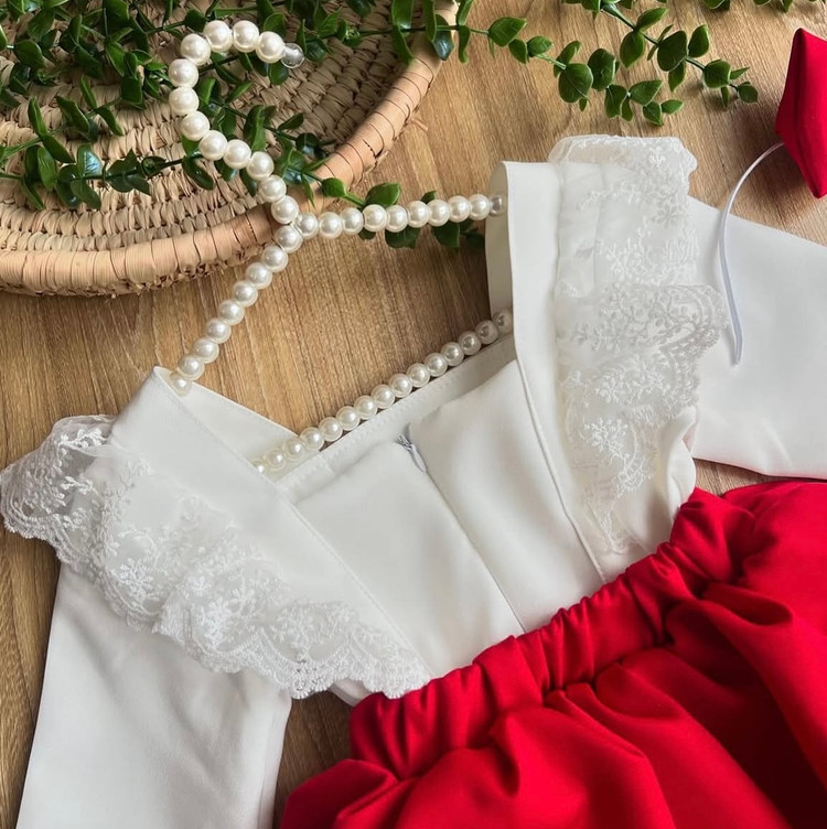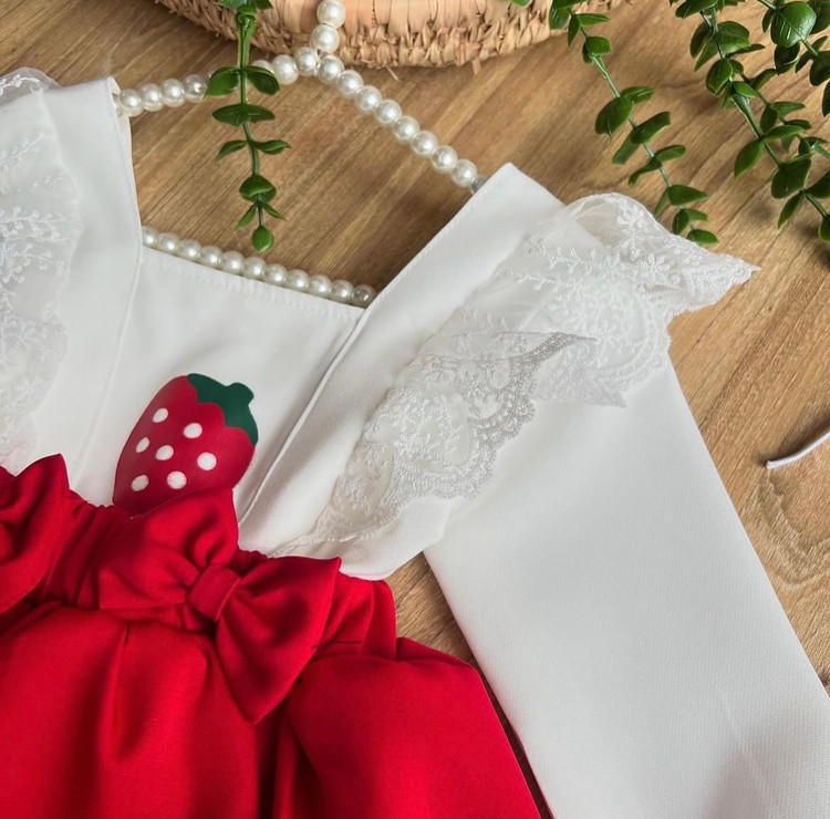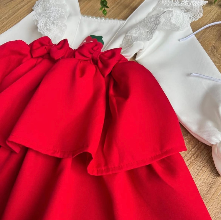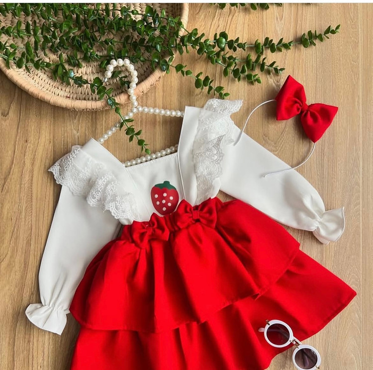 کیوت ترین شومیز و دامن قرمزی که تا حالا دیدی اگه سایز دخترت میشه از دستش نده این حجم از چین چین و دانتل رو تن دخترت ببینی قورتش میدی شومیز و دامن توت فرنگی و تل جنس کرپ مازراتی گرم بالا مناسب ه تا ۷ سال سایزبندی دقیق اسلاید آخر با احترام =۴۹۵