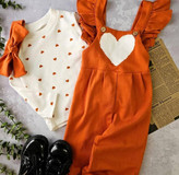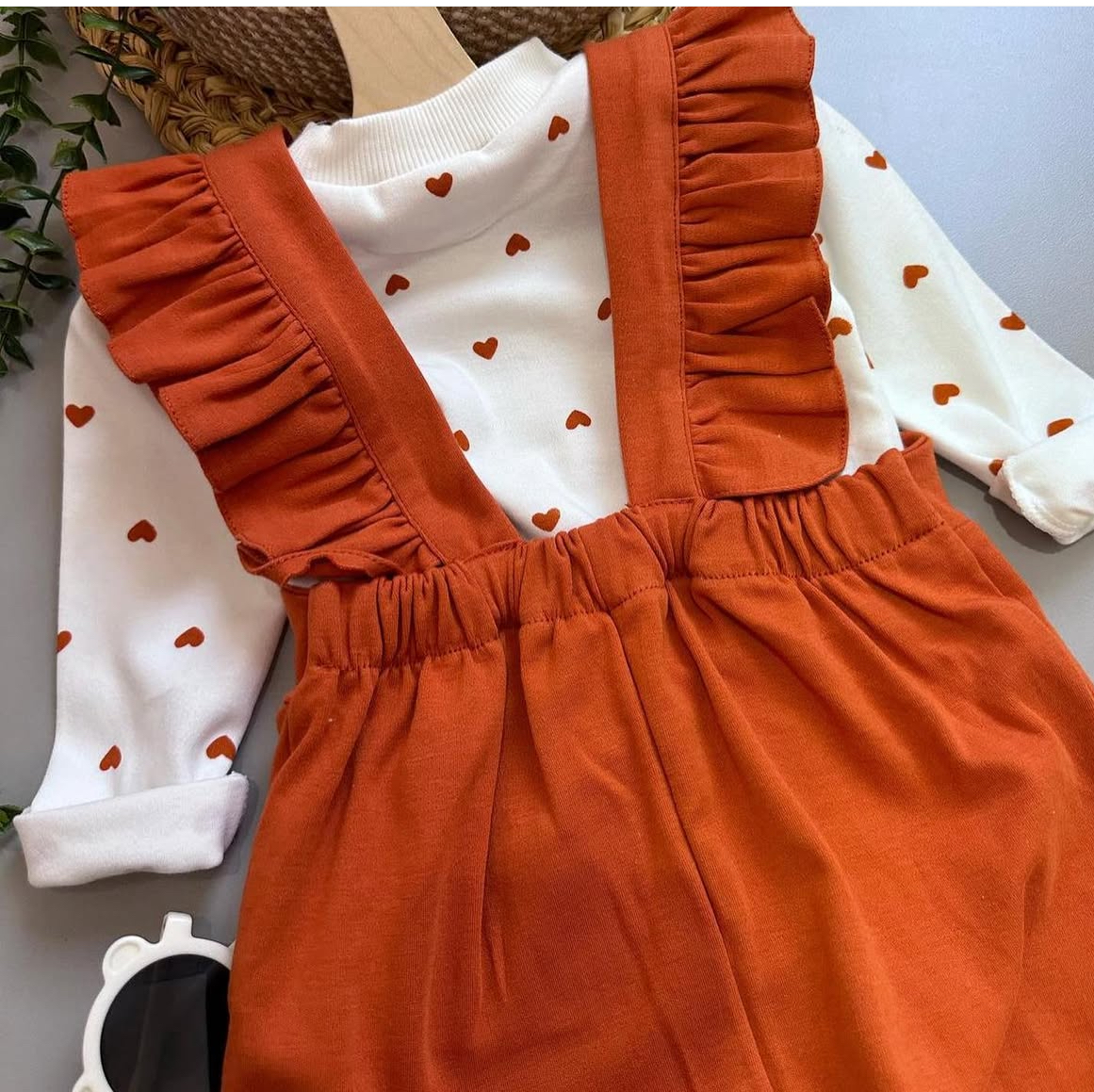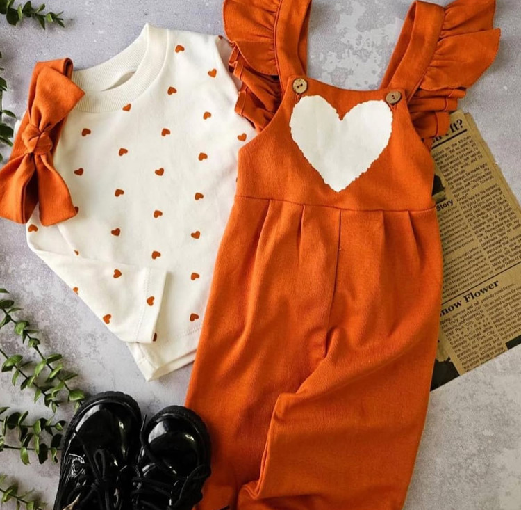 …. بیلر و بلوز قلبی به همراه هد به رنگ اصلی پاییزی جنس هر سه نخ پنبه هست و کشسانی دارن هر ۳ به صورت جدا قابل استفاده هم هستن و بیلر رو بهار تابستون میتونید با آستین کوتاه بپوشونید و پاییز با آستین بلند مناسب ه تا ۶ سال سایزبندی دقیق اسلاید آخر سه تیکه باهم،با احترام= ۴۹۵ #روزدختر#دختر
