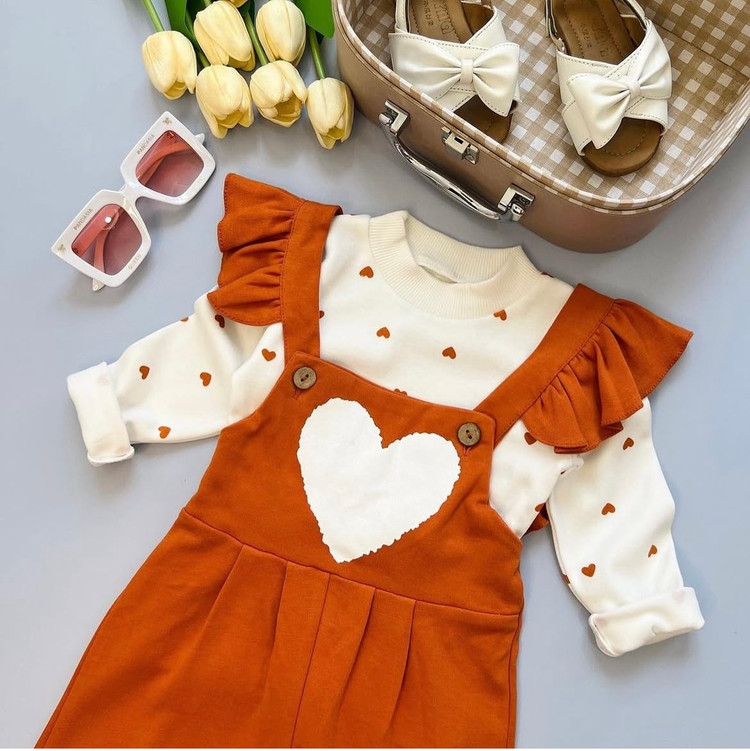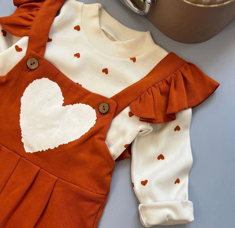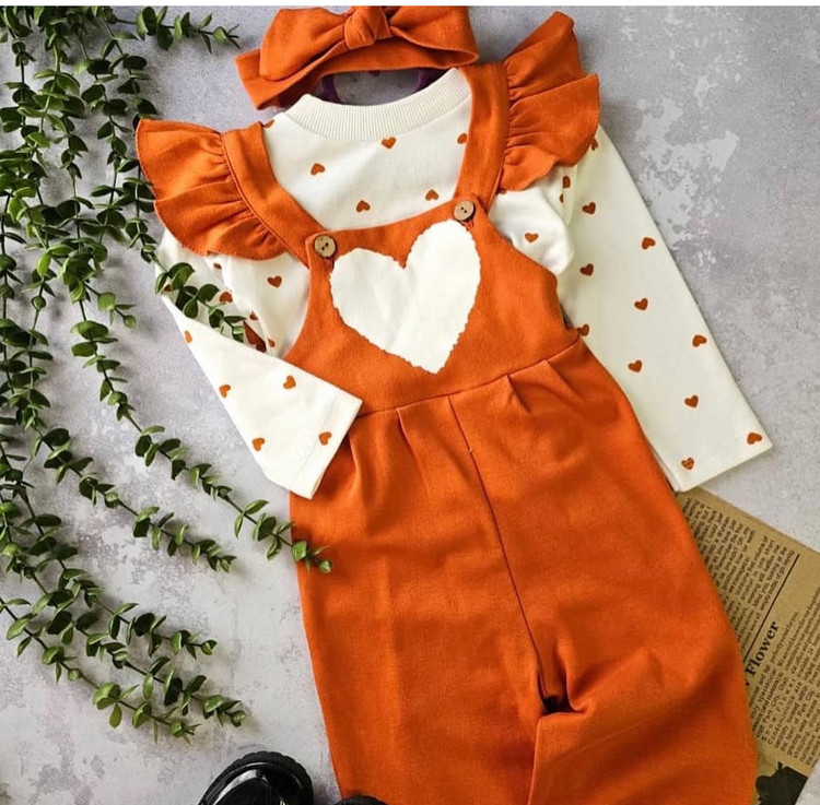 …. بیلر و بلوز قلبی به همراه هد به رنگ اصلی پاییزی جنس هر سه نخ پنبه هست و کشسانی دارن هر ۳ به صورت جدا قابل استفاده هم هستن و بیلر رو بهار تابستون میتونید با آستین کوتاه بپوشونید و پاییز با آستین بلند مناسب ه تا ۶ سال سایزبندی دقیق اسلاید آخر سه تیکه باهم،با احترام= ۴۹۵ #روزدختر#دختر
