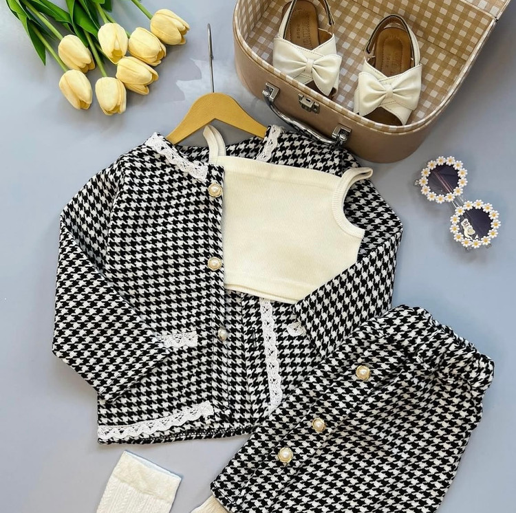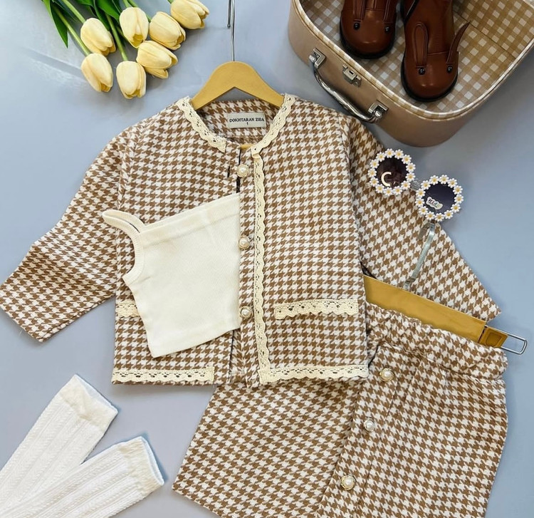 اگه میخوای یه دختر کوچولوی قرتی و باکلاس داشته باشی اینو براش بخر ست سه تیکه آوردم فوق العاده شیک و جذاب رویایی ترین ستی که میتونی برای کوچولوت داشته باشی ست که شامل: کت +دامن+ تاپ در دو رنگ کرم و مشکی سایز ۱ تا ۶ سال با احترام فقط: ۴۸۰ و دامن#سرهمی#بادی#بادی_وارداتی#نوزاد#سیسمونی#لباس_بچه