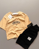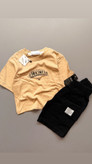 رنگ موجود تیشرت کرم و شلوارک مشکی